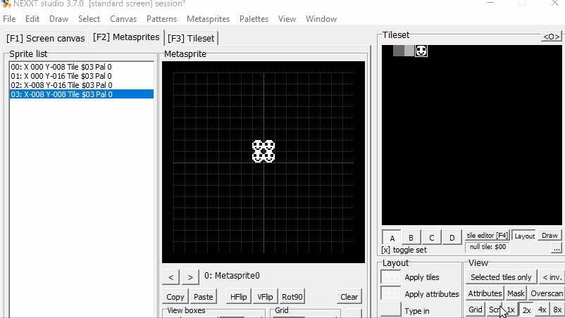 .mapmust have its own rules, but in my case, I only need a way to access the data I've created, and I imagine I'm not the only one.3. Integrate a dummy position compensation for Metasprites. This would give the tool more flexibility for working with real-world cases where the sprite's location exceeds the available range of the current workspace.